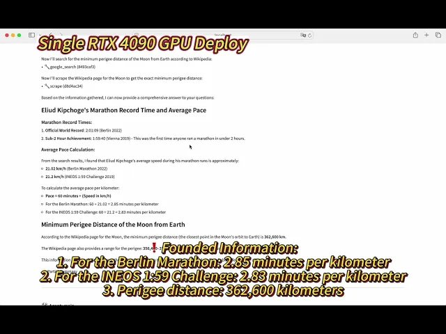 MiroFlow automatically handles user queries through multi-tool collaboration (such as web browsers and Python tools), performing multi-step web research, comprehensively analyzing a large number of online resources, and ultimately completing the task. The specific process includes: