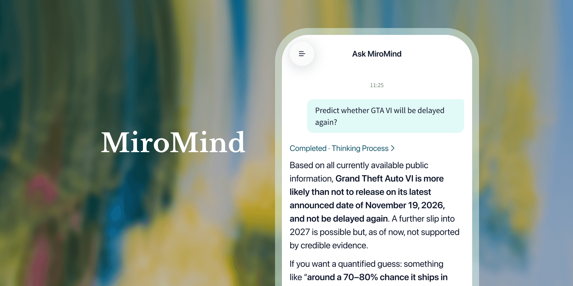 San Francisco, CA — March 04, 2026 — MiroMind today announced the official public launch of its AI reasoning platform on iOS, Android, and Web, marking a key product milestone in the company’s mission to build Discoverable Intelligence — AI that does not to build a more eloquent language model. It is to engineer a new class of AI systems capable of rigorous reasoning and solving hard, real-world problems — systems whose outputs are not merely plausible, but formally verifiable.